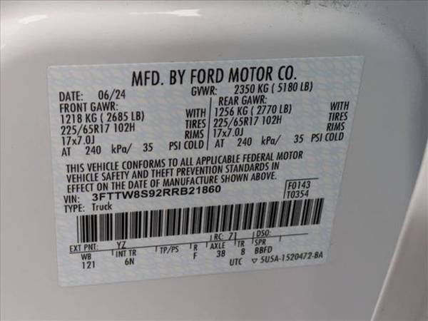 * Fx4 Off-Road Package * 4K Tow Package * Navigation System * Lane Keeping Assist * Keyless Start * Desert Brown; Activex Trimmed Front Bucket Seats * Engine: 2.0L Ecoboost * Equipment Group 500A Standard * Front License Plate Bracket * Oxford White * Transmission: 8-Speed AutomaticThis outstanding example of a 2024 Ford Maverick LARIAT is offered by AutoNation Subaru Carlsbad. This Ford includes: ENGINE: 2.0L ECOBOOST (STD) 4 Cylinder Engine Gasoline Fuel Turbocharged *Note - For third party subscriptions or services, please contact the dealer for more information.* Simply put, this all wheel drive vehicle is engineered with higher standards. Enjoy improved steering, superior acceleration, and increased stability and safety while driving this AWD FordMaverick LARIAT. This is the one. Just what you've been looking for. You could keep looking, but why? You've found the perfect vehicle right here.