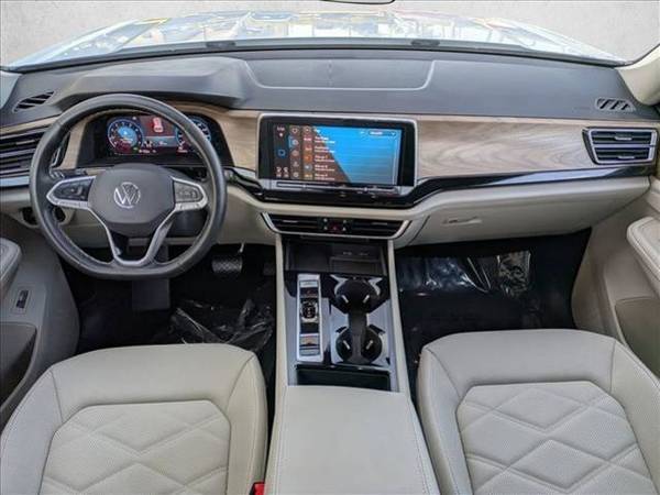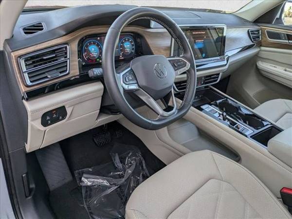 * Towing Essentials & Protection Package * 2Nd-Row Dual Captain'S Chairs * Black Wheel Package * 3rd Row Seat * Vw Care * Lane Keeping Assist * Keyless Start * Rear Spoiler * Cooled Front Seat(S) * Media Cable * Pure White * Shetland Beige; Perforated V-Tex Leatherette Seating SurfacesAutoNation Volkswagen Carlsbad has a wide selection of exceptional pre-owned vehicles to choose from, including this 2024 Volkswagen Atlas. The Volkswagen Atlas is the benchmark all other SUVs strive to meet. With exceptional power, towing and handling, this SUV can handle anything thrown at it. You appreciate the finer things in life, the vehicle you drive should not be the exception. Style, performance, sophistication is in a class of its own with this stunning Volkswagen Atlas 2.0T SE w/Technology. This vehicle won't last long, take it home today. This is the one. Just what you've been looking for.