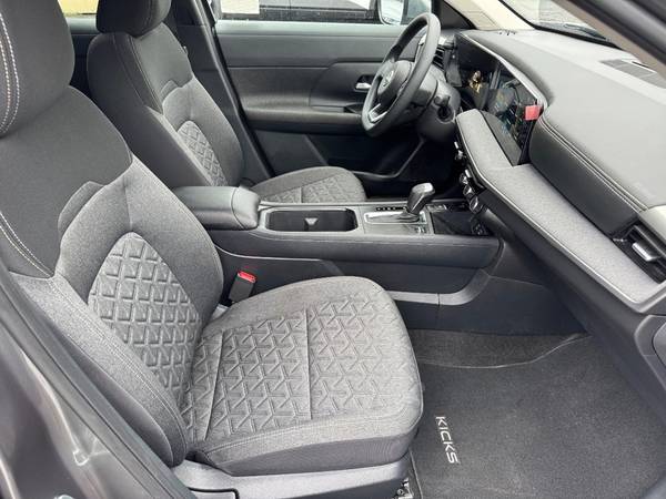 Get into our 2025 Nissan Kicks SV, and you're ready to own the city streets and keep on riding in Gun Metallic! Motivated by a 2.0 Liter 4 Cylinder providing 141hp tethered to an Xtronic CVT that rewards you with economical excitement. This Front Wheel Drive SUV returns nearly 35mpg on the highway, and it's responsive suspension helps you navigate your world with agile comfort. Bold and brash, our Kicks helps keep you in the center of attention with LED lighting, chrome grille accents, and 17-inch wheels.