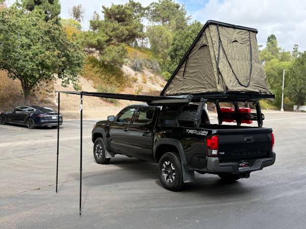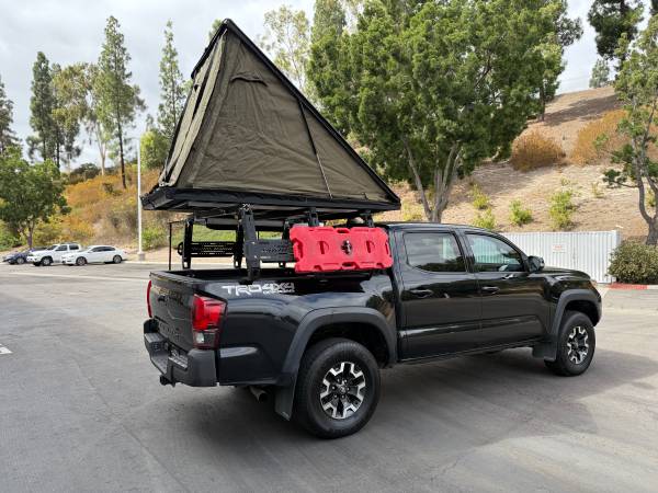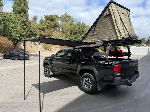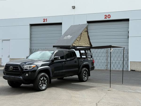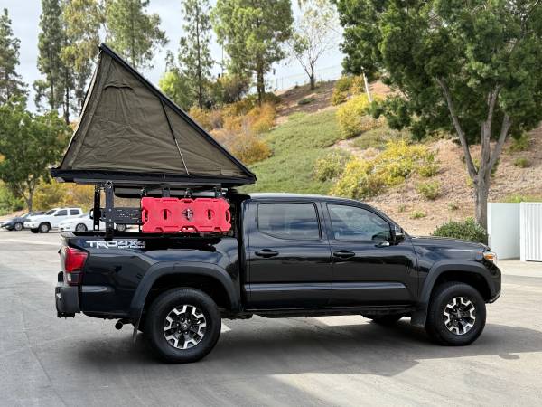 HELLO EVERYONE HERES OUR BEAUTIFUL 2020 TACOMA TRD OFFROAD WITH RARE 6 SPEED MANUAL TRANSITION 4WD REAR DIFF LOCKER OFFROAD PACAKG ULTRA LIGHT ROOF TOP TENT UPTOP ADJUSTABLE BED RACK BEAUTIFUL TRUCK...