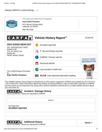 Introducing the 2003 Dodge Neon SXT, a reliable and efficient vehicle that will elevate your driving experience. This stylish sedan is equipped with a powerful 2.0L NA I4 single overhead cam (SOHC) 16V engine, providing you with smooth and responsive performance on the road. With its spacious interior and comfortable seating, you and your passengers will enjoy every ride in this vehicle. The sleek design and eye-catching exterior of the 2003 Dodge Neon SXT will surely turn heads wherever you go. Don't miss out on the opportunity to own this incredible car. Visit our dealership today and take it for a test drive. You won't be disappointed.