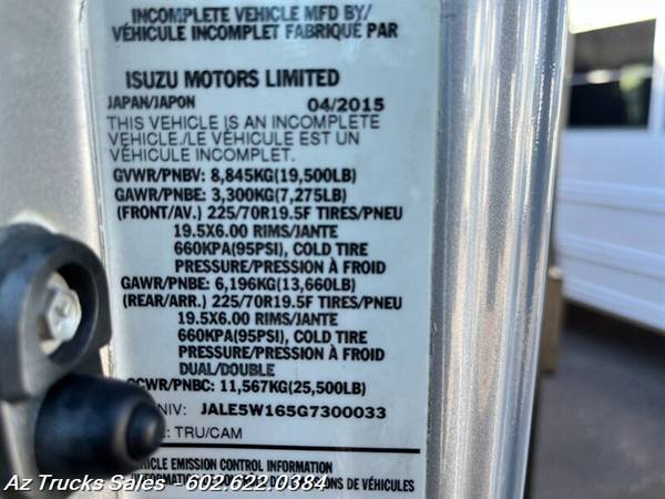 Az Truck Sales is selling a clean 2016 Isuzu NRR Regular Cab Dump Truck with the 5.2L Diesel engine and automatic transmission. This truck has low low miles for the year at 113k original miles.