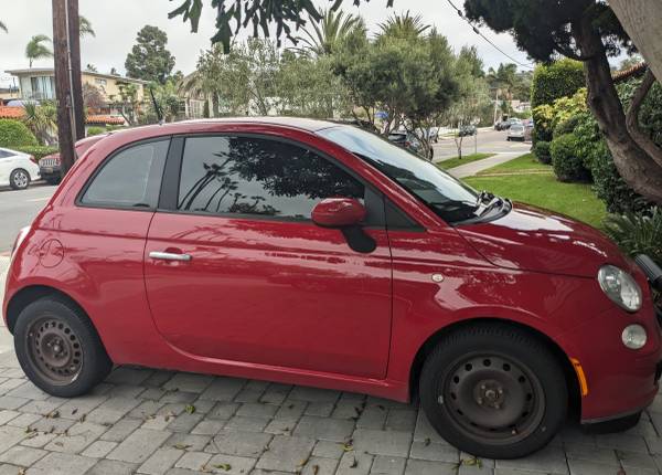 Selling my red Fiat 500 as I am leaving the country. Very clean and in great condition. Used mainly within San Diego. It comes with tinted windows, Weather-Tech floor mats, big light in the front, trailer/bike hitch in the back. New tires installed in May 2025, last serviced in April 2025.