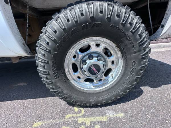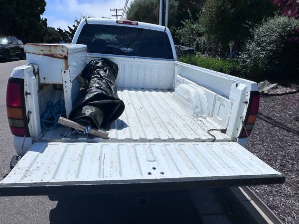 2004 4x4 GMC Sierra 2500HD crew cab with 6.6L Duramax turbo-diesel and Alison transmission. It is an SLT with gray leather interior, power seats with memory for 2 people, and retractable mirrors. The truck has a towing package, trailer brakes, 16 inch wheels, and tool box. It has been well maintained, with receipts back to 2007.