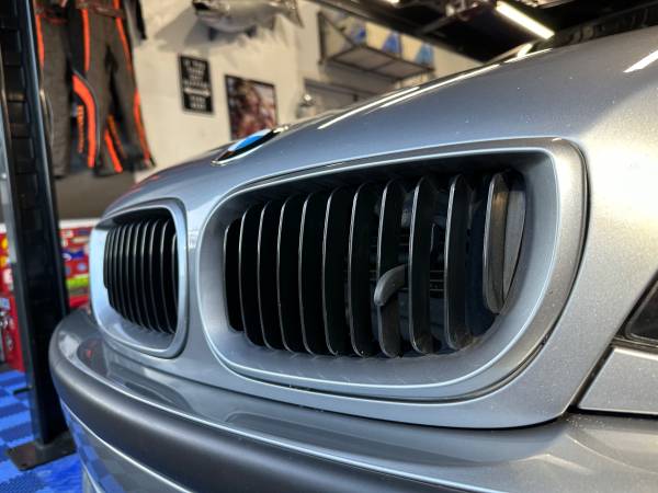 The only attention it could use is headliner is beginning to sag in the rear. Car comes with 2 keys, spare ‘door only’ key (no fob internals), full tool kit, dashcam, factory BMW E46 car cover + foldable BMW sun shield, and original window sticker with lots of receipts documenting most of the work done by PO. Just dropped $1k on new MPS4S tires and $600 on wheel refinishing (inner barrels spotless :-). Car also has Euro rear foglight button on headlight control panel and an aftermarket muffler (can’t tell from the inside when driving but has a nicer note on the outside). Windows tinted and also includes BMW all weather floor mats up front. Hood kidney grills have painted surround trim. Rear seats fold down + ski bag behind rear seat arm rest. Heated front seats as well.