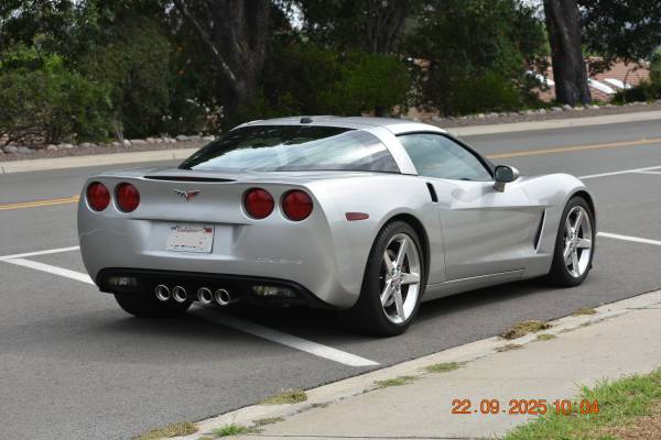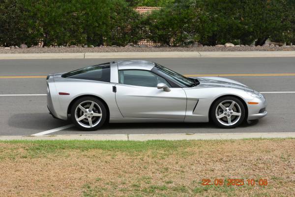 2005 corvette base model coupe. Silver with silver leather interior. Six speed manual transmission. Very nice condition inside and out. Always garaged and covered and serviced up to date. No accidents. No issues, everything works. All original, stock condition accepts for custom mufflers. Comes with an extra set of stock mufflers in perfect condition. Has two removable tops. One is silver and the other is a transparent smoke glass.