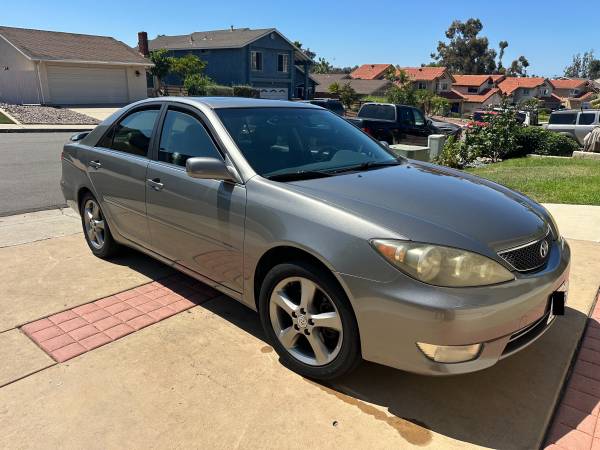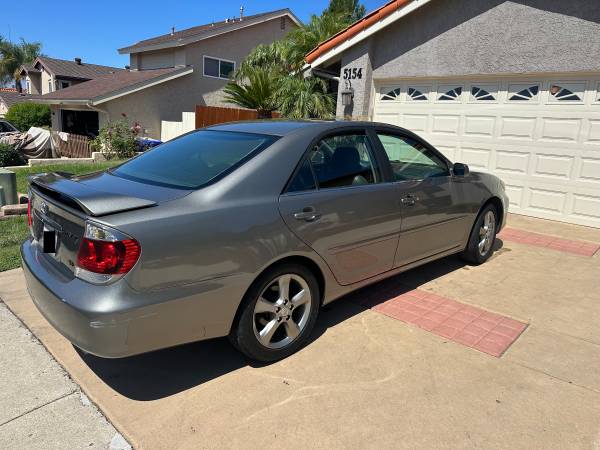 2005 Toyota Camry SE V6 in excellent condition. We're the only owners. Non-smokers. Regular and consistent maintenance. Very clean with leather interior and newish paint. Great fuel efficiency. A great car for local commute, school transportation or back-up safety net vehicle. With continued regular maintenance, this Camry will easily go 300k+ mi.