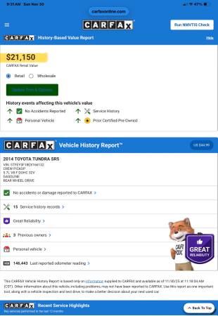 Gorgeous truck! Brand new set of BFGOODRICH K0’2 tires, upgraded TRD wheels, upgraded bilstein 6100 shocks/struts, TRD PRO grill, TRD exhaust tip, Never been in accidents. Has all the power options, sound system, huge sliding rear window, tow pkg, back up camera, Bluetooth , everything works perfectly!
