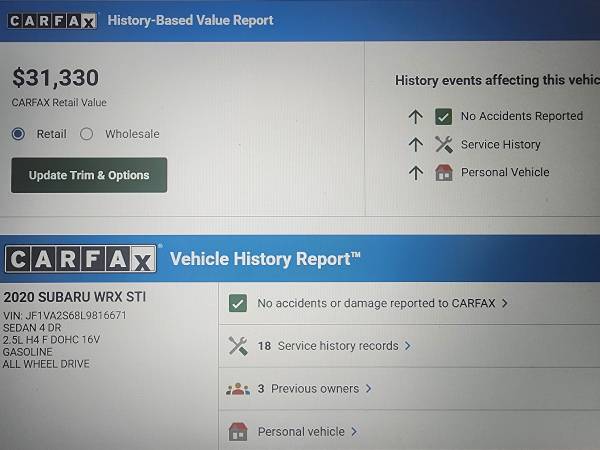 2020 SUBARU WRX STI (CLEAN CARFAX, FULL SERVICE HISTORY, 53K) EXCELLENT CONDITION
