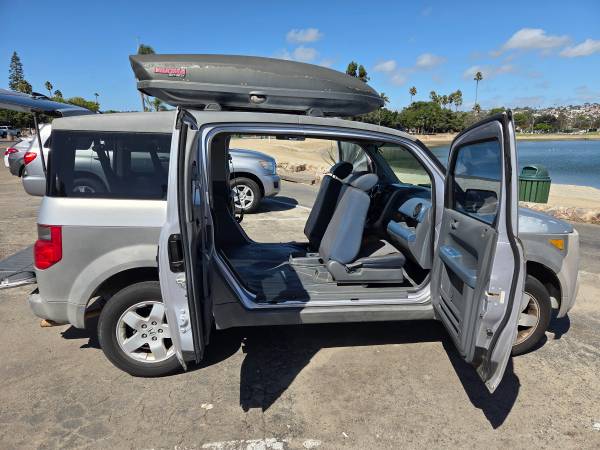 Honda Element LX 2005 Automatic Runs Great No check engine light ready to smog. Suicide doors and surprisingly huge storage capacity. Rear seats easily remove and fully recline along with front seats for napping. Air Conditioning, Power Windows and locks. Clean title no accidents. Newish struts all around and oil change. Upgraded stereo with DVD player and hands free Bluetooth phone support. Has roof rack storage box NOT included in price.