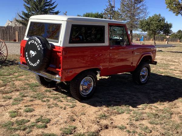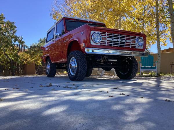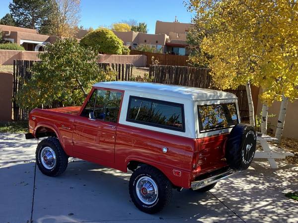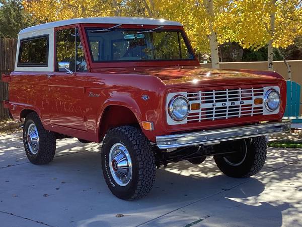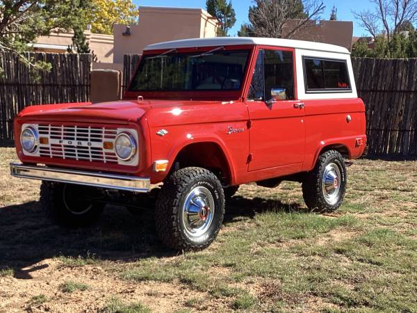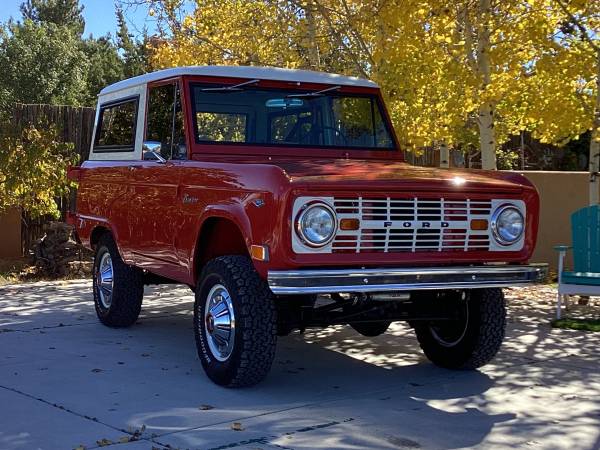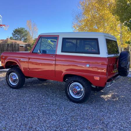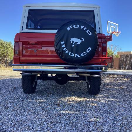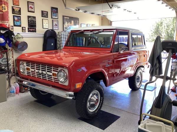 1968 frame off restored uncut Bronco with factory fresh Rangoon Red paint with white vinyl interior. 2.5 inch lift with Dana44 front axles with 9 inch rear end. This Bronco has every nut, bolt and grommet new with removable hardtop. Original rebuilt 289 motor with 302 heads. Power steering, front disc brakes, hydraulic hood props, aluminum high efficiency radiator, dual upgraded wipers, vintage A/C with sliding rear windows. Sound deadener mat throughout interior of Bronco. All new tinted glass with new carpet. Swing out spare tire with Bronco cover. New badging, new carpet, new sill plates. List goes on and on. Take the top off and take it for a cruise to the beach or go climb a mountain. 1st generations BRONCOS are getting harder to find. Wherever you take this beauty will get you thumbs up all day. Thanks for looking. Serious buyers only. Don’t need help selling. Scammers stay away. show contact info