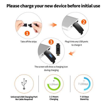 Long-lasting Battery - Built in USB Plug (no cable needed). One full charge of this pedometer watch gives you 7 days of working time.