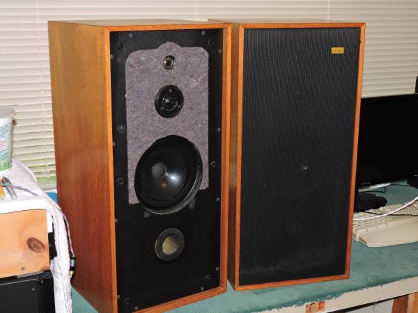 Developed for the British Broadcasting Corp (BBC) the legendary BC-1 was the chosen monitor for the BBC system in 1969. It was famous for its accuracy and neutral sound. They were considered a true marvel of engineering, with 3rd order crossovers and a super tweeter to reach 20,000 Hz. This pair I sold to a music professor (head of the music department at Palomar College) in 1984 through my Optimum Audio business. And now they found their way back to me. The teak wood finish has been sanded and re-oiled.