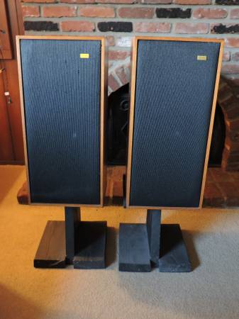 This pair of the BC-1 has the Optimum Audio Speaker Internal Upgrade package. The crossover printed circuit board has been eliminated by hand wiring all the components, capacitors and inductors, see the pictures. The internal wiring is Teflon insulated, very expensive but has the cleanest sound. Capacitors replaced with premium audio grade polypropylene film caps. The inductors were wrapped with Teflon tape replacing the original PVC tape. Original binding posts replaced with gold plaited 5 way binding posts, spaced to take dual banana plugs. Tilting stands are of the recommended height. The tilt is for a little better high frequency dispersion. All this results in an even more finely detailed sound, more like that of an electrostatic speaker. Includes an 8 foot pair of Teflon insulted speaker wire so you get the best results with these exceptional, rare speakers. Also there is the original binding posts and cross over PC Boards.