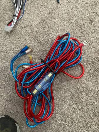 Switched to different sub in Jeep after installing. Still has plastic sticker. Has remote and I can include the wiring kit (was $100) also pictured. This is $350 on Amazon without the amp wiring kit.