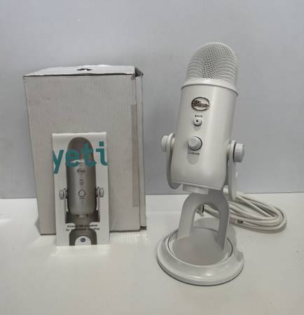 Up for sale is a Blue Microphones Yeti USB condenser microphone in white color.