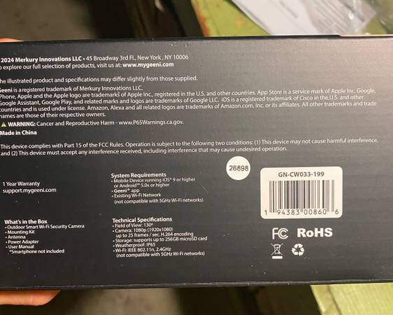 Geeni Hawk3 Smart WiFi outdoor security camera BRAND NEW IN BOX- works with Alexa and Google Home Weatherproof Night Vision. Motion detection $50 cash or Venmo. I’m near Madison HS in Clairemont....