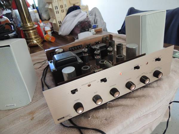 This is Harman Kardon Sweet sound Tubes. Model: A-224 Made in USA. Built in: Phono 1/ Phono 2 / Tuner / Tape /Aux Super heavy. Gold color. This Amp was tested fully Operational. No cover. TRIO...