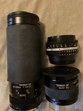 1 Tamron SP 60-300mm, 1 Tamron SP BBAR MC, Nikkor 50mm, assorted filters and flash