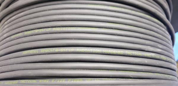 This listing is for one spool of approx. 330 feet (100 meters) of fiber optic cable with weatherproof mil-spec terminated ends. Spool is included. Cable Info: Amphenol Spectra-strip radiation...