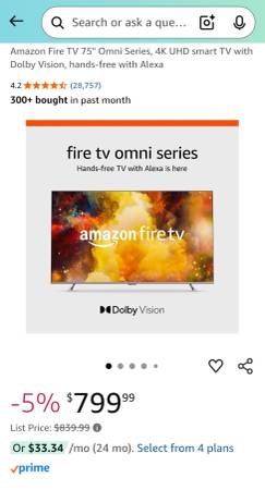 Amazing deal for like new/perfect condition beautiful television. Firm price. Giant 75 inch smart TV. If you play video games or watch a lot of sports or movies it's perfect. Awesome for NFL football! It's smart and Alexa connected. I am selling just the TV and the included stand. Wall mount is not included. Text me with your name and any questions if you are interested in taking a look. I will not answer calls from numbers I do not recognize.