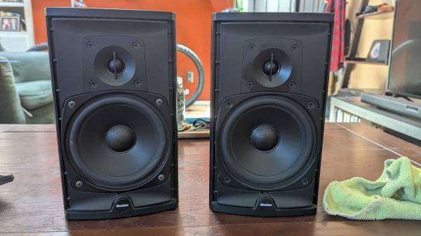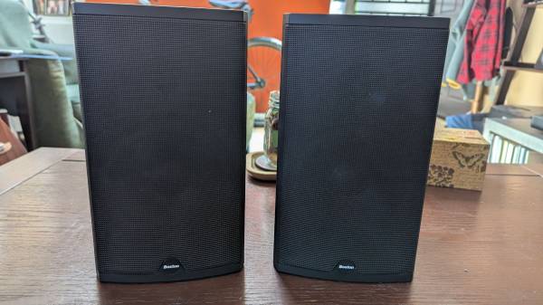 Pair of Boston Acoustics CR6 home entertainment speakers. Great for any space. Sound great. They're old but in good condition. I no longer have a receiver, so I'm moving my speakers on.