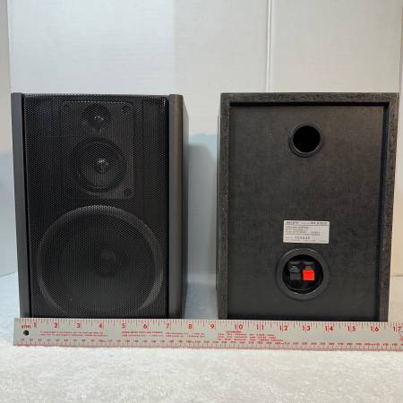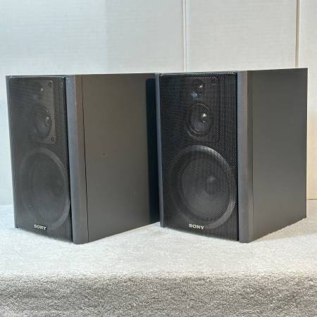 A nice, clean and in very good condition 3-way Sony Bookshelf Speakers, made in Japan, not many of these left. Features solid case construction, made in Japan, nice size 11.25” height x 7.5” wide, rated input 25w to a maximum of 50w at 6 ohms, cabinets and speaker grills in very good condition (shows some very minor wear), and more. Decent speaker wire available by the foot. Demonstration available. Dimensions: 7.5” 11.25” x 9”. Cash, Venmo or Zelle accepted. See below for my convenient and easy to find location.