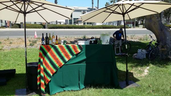Portable bar with bar back table and black linens is $40