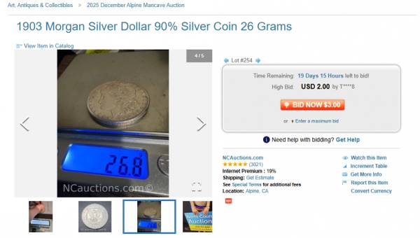 1903 Morgan Silver Dollar 90% Silver Coin 26 Grams