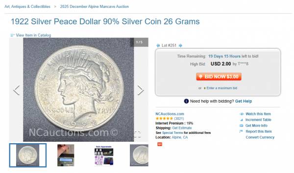 1922 Silver Peace Dollar 90% Silver Coin 26 Grams