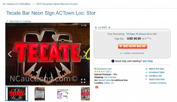 Neons, Steins, Collectibles, Bar Mirrors and Barware, Silver Coins, Gold Rings, Adult Magazines, Packed Garage!! To get upcoming auctions, text ncauctions to 888-841-4382. Email or text with questions (619) 787-4906