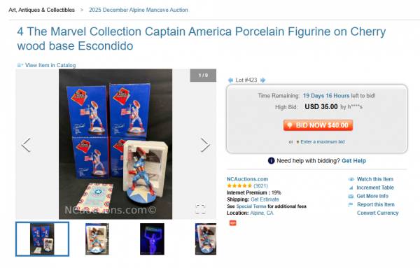 4 The Marvel Collection Captain America Porcelain Figurine on Cherry wood base Escondido