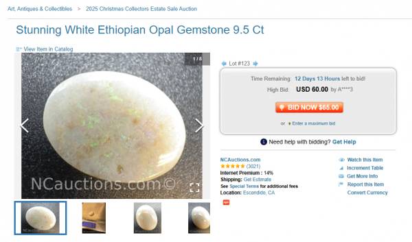 Stunning White Ethiopian Opal Gemstone 9.5 Ct