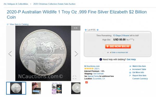 New Items Added Daily! Ephemera, Rare Comics, Gemstones, Movie Posters, Nazi, Silver Coins, Gold Bars, Memorabilia, Pokemon, Collector Cards, Action Figs, etc. To get upcoming auctions, text ncauctions to 888-841-4382. Email or text with questions (619) 787-4906