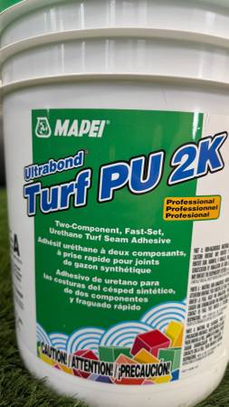 Selling multiple, brand-new, sealed pails of Mapei Ultrabond Turf PU 2k. This is a top tier; two-part polyurethane adhesive specifically designed for installing artificial grass.