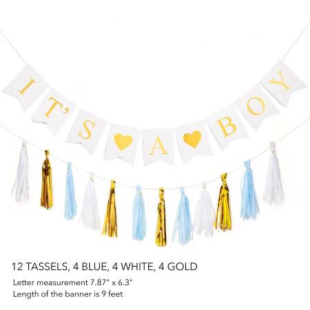 1 pcs - white and gold foil "It's a Boy" banner (9 feet long, letter size 6.3 x 7.87 inches)