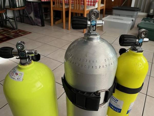 1). Grey Aluminum 80 cu ft (3000 psi) Tank. In Excellent Condition, just needs hydro, that's why letting them go a lot cheaper than any dive store. Only asking $130 cash you must pick up.