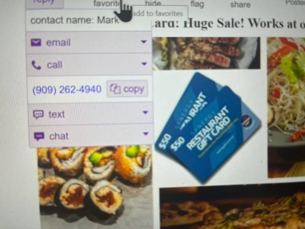 This guy took my money for Gift Cards $550. Never received. Now he won’t return calls, emails or text… I also had a woman Alice (an elderly woman) reach out who was scammed for $1000. by him as well. The info I have from her is as follows His name is Mark Carter address 2241 N 1st st Upland Ca 91784-1349 show contact info