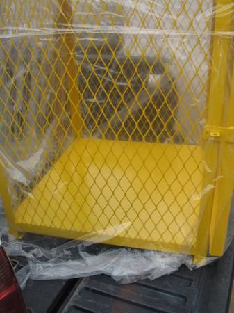 Brand New, still plastic wrap. Lists for over $641.41 from Grainger+shipping.Made for forklift propane tanks. Model 491M79-Exterior Depth-29-3/4''-Exterior Height 34-7/8'' -Exterior Width30-1/8''. Could also be used as a dog house or secure lock up basically for anything.---if interested leave a call back number for quicker response---