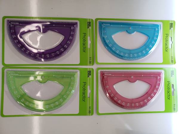 Plastic Protractors $0.50 each Plastic Compass $0.50 each Must buy a minimum of $10 (20 in combination). Brand new