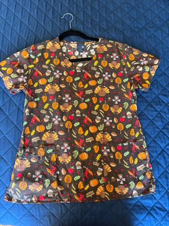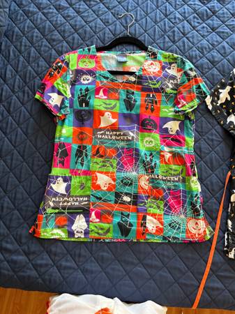 Halloween and Thanksgiving Scrub tops. Fun and cheery. Small. $5 each or 4 for $15.