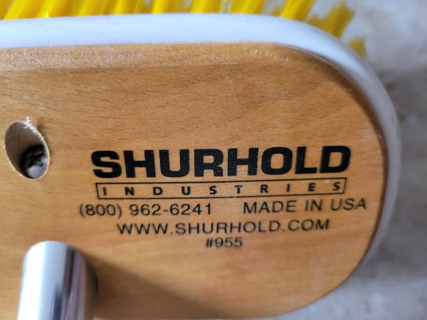 Shurhold's 6" 955 Deck Brush with medium bristles features a hardwood base, premium bristles, wrap-around safety bumper and the handy Shur-Lok quick-release adapter. The angled head has outward flaring bristles that not only hold large amounts of cleaning solution, but also reach into corners and other tough terrain where dirt lurks as well. Yellow. Polystyrene.