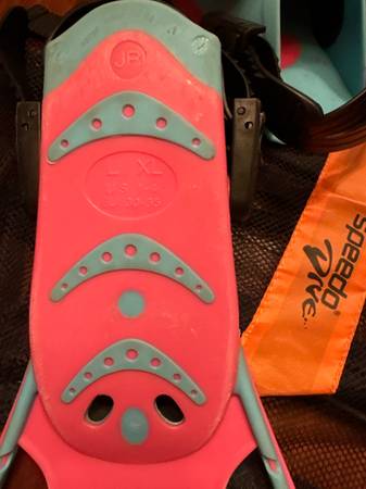 Speedo dive flippers and snorkel Pink and blue Size JR L/XL US 1-4 Might be able to find mask Good shape