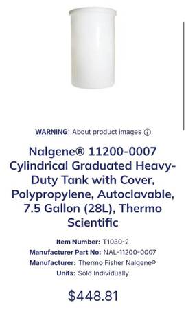 Up for sale I have a quantity of good used Thermo Nalgene polypropylene storage tanks. These tanks are all in good condition with their covers. They were used in a lab to store purified water and other non hazardous liquids.