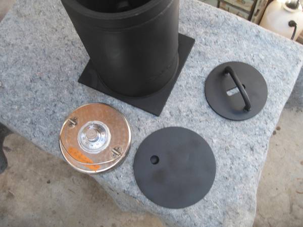 A solid heavy steel body that goes into the ground than is filled with concrete. This was from the 1940's and has a working dial combination with a re-locking device. Also has a interior drop box lid that is lockable, see pics. Measures 15'' tall and is 9'' in diameter. Price is firm.---if interested leave a call back number for quicker response.---