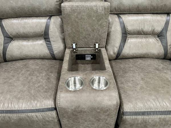 Glider Loveseat has center console w/cup holders and AC/USB ports