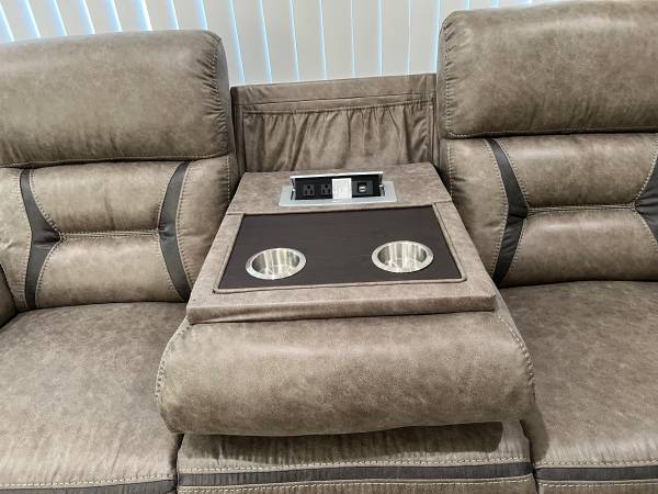 **Sofa has drop down table w/cup holders And pop-up dual AC/USB ports
