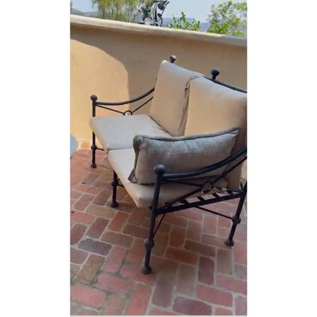 Kreiss Bermuda patio loveseats. Pair. Loveseats are used, good condition. Wear on finish. Fabric is in good condition, sunbrella. The pair is solid condition. See less Dimensions 60ʺW × 34ʺD × 41ʺH
