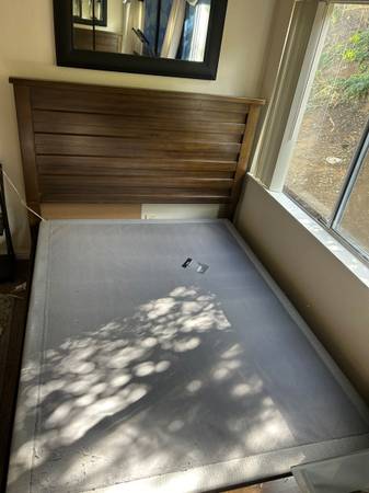 Queen Panel Bed - Footboard, Headboard, rails, foundation (gray) CASH only. Queen Panel Headboard 80.0lbs 66.63W x 55.0H x 2.5D Queen Panel Rails 41.0lbs 63.0W x 13.75H x 81.25D...