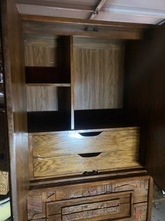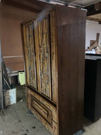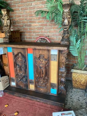 Highly sought after pieces. Witco vintage retro bar and stools and Lane Pueblo brutalist high boy dresser. I had this dresser in my tiki bar as it totally matched and used for storage. These are rare and where
